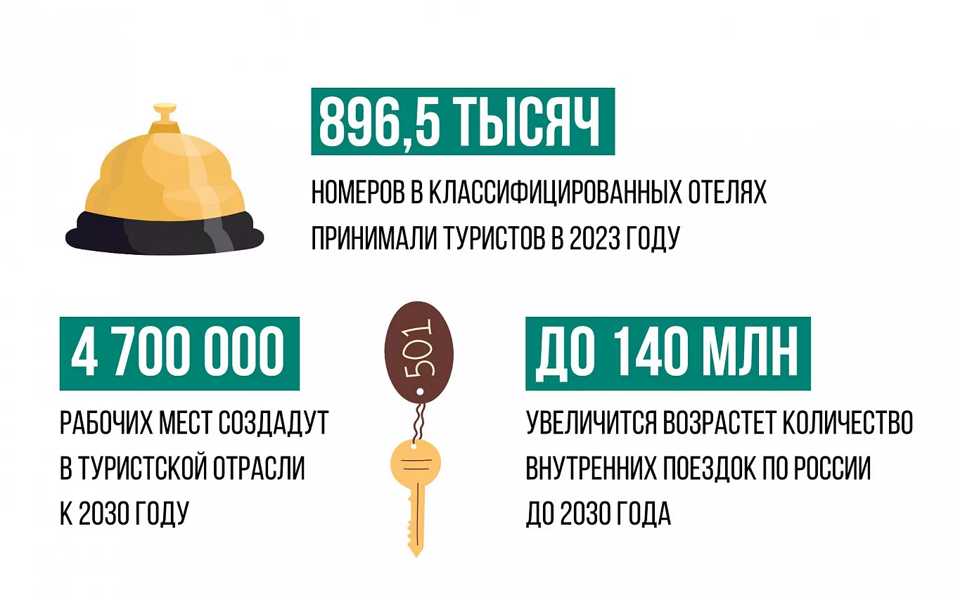 К 2030 году в российской туристической отрасли создадут 4,7 млн рабочих мест. Такой результат возможен благодаря развитию самой индустрии, усиленной подготовке новых кадров и повышению статуса сотрудника туристической отрасли. Уже сейчас многие регионы испытывают дефицит квалифицированных кадров.