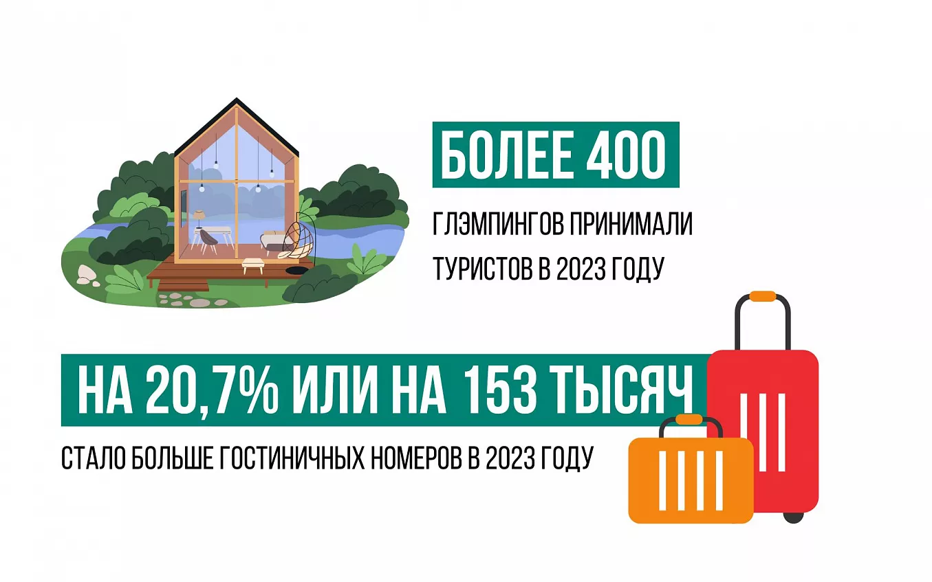 Прошлый год для туриндустрии и самих туристов закончился с отличными результатами. Стало больше гостиниц, глэмпингов, кемпингов – только за первое полугодие ввод мест размещения вырос на 60%, а гостиничных номеров за год прибавилось на 20,7% или на 153 тысяч. Всего же туристы останавливались в 896,5 тысяч номеров в классифицированных отелях.