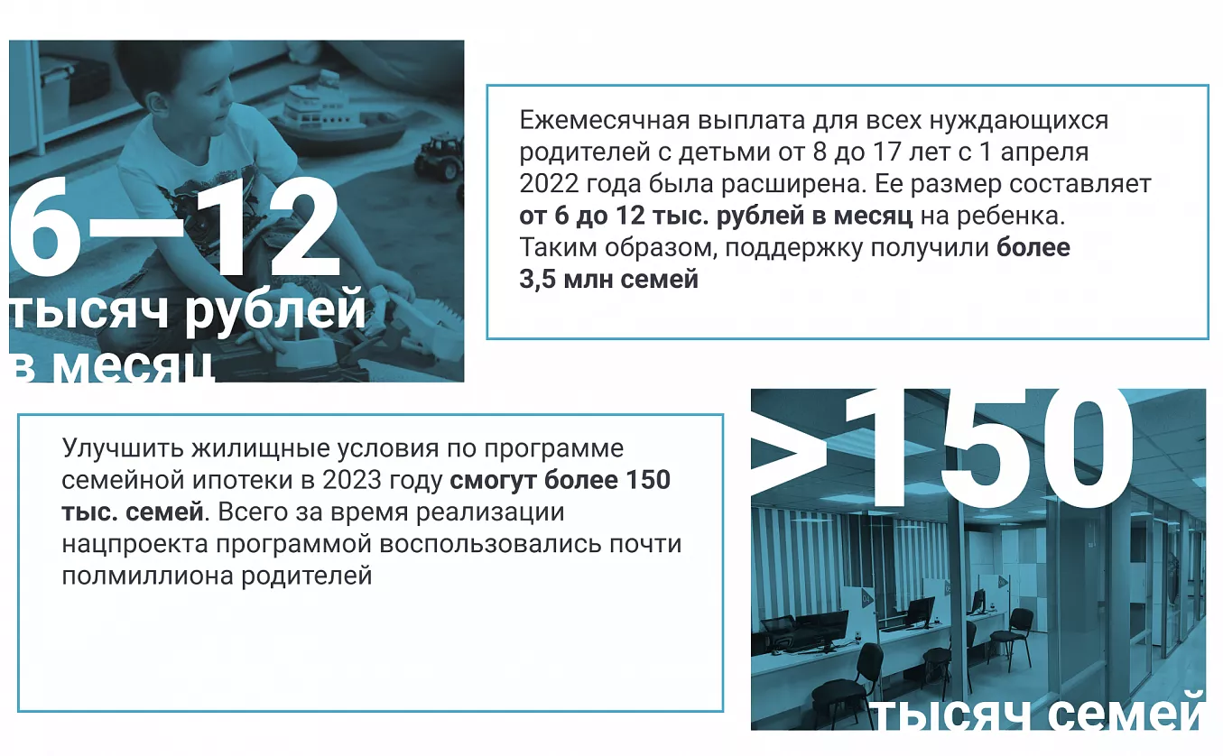 Помимо этого, для многодетных семей, выплачивающих ипотеку, предусмотрено дополнительное финансирование. Единовременные выплаты в размере до 450 тыс. рублей могут получить родители детей, родившихся с 1 января 2019 по 31 декабря 2023 года. Эта мера позволит тысячам семей значительно сократить сумму долга, а значит, и расходы на приобретение жилья.