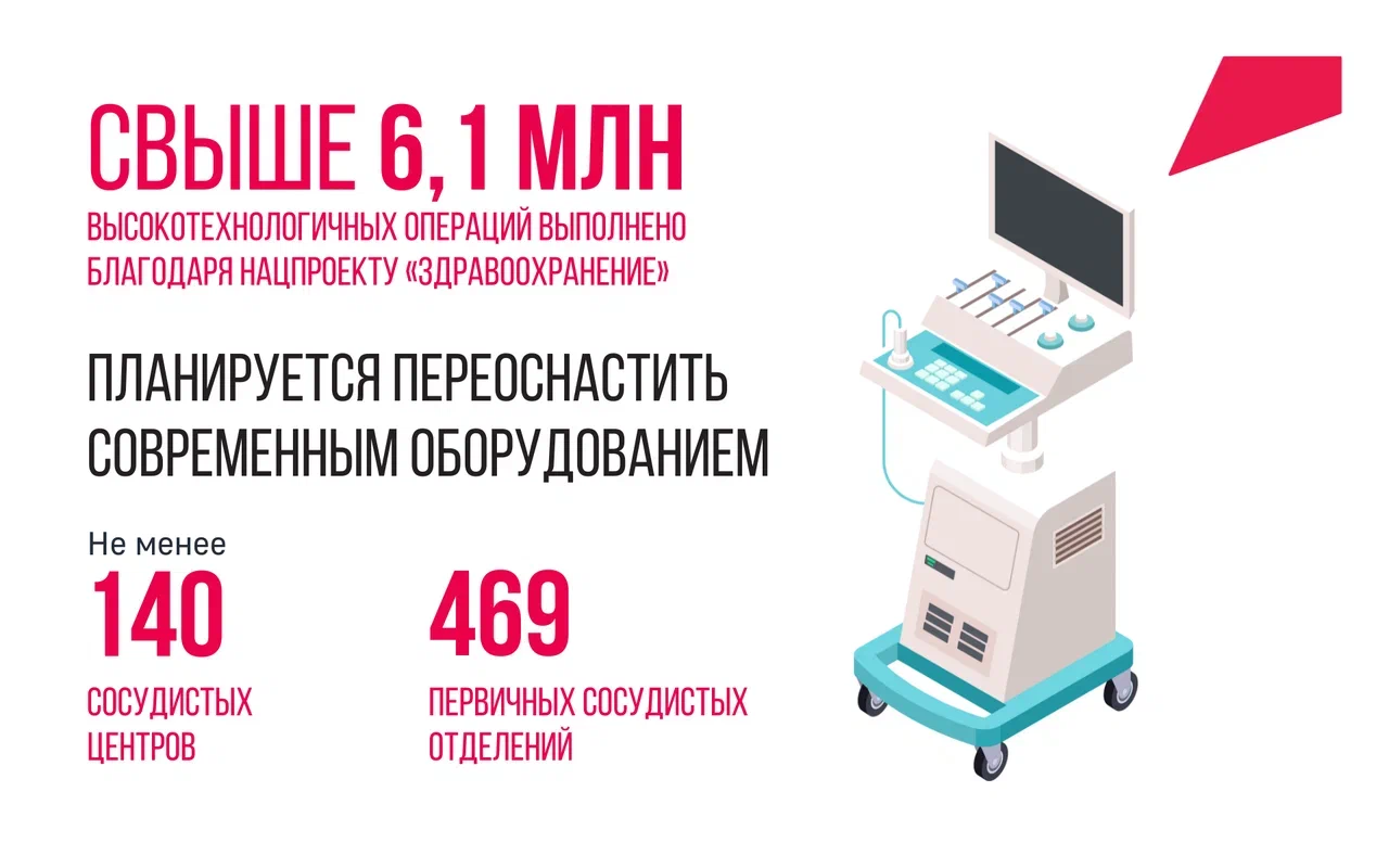 Благодаря нацпроекту «Здравоохранение» выполнено более 6,1 млн высокотехнологичных операций.
