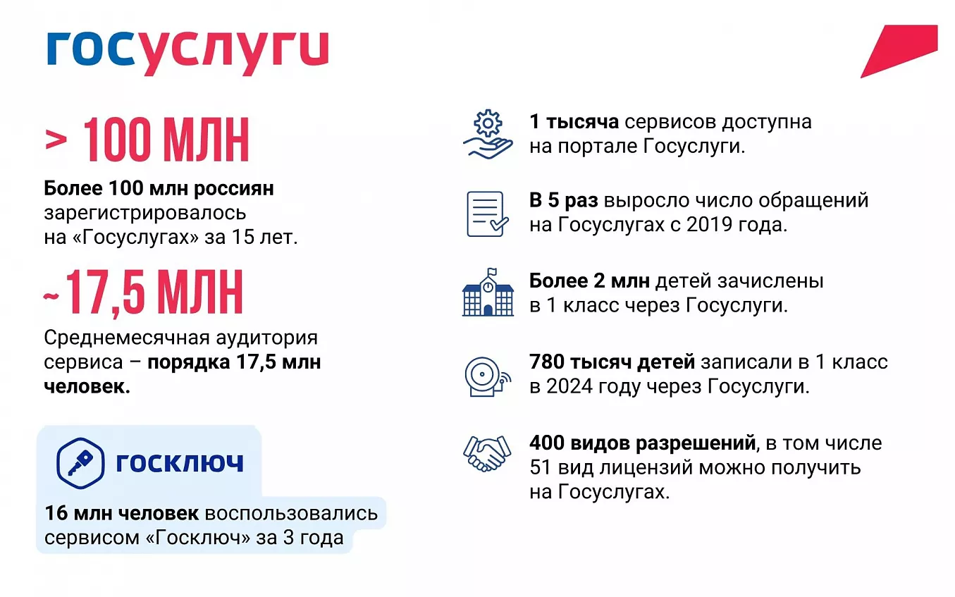 За 3 года сервисом воспользовались 16 млн человек. «Госключ» позволяет отправить 3-НДФЛ, подписать налоговые уведомления, кадровые документы. А всего доступны более 430 федеральных и региональных услуг.