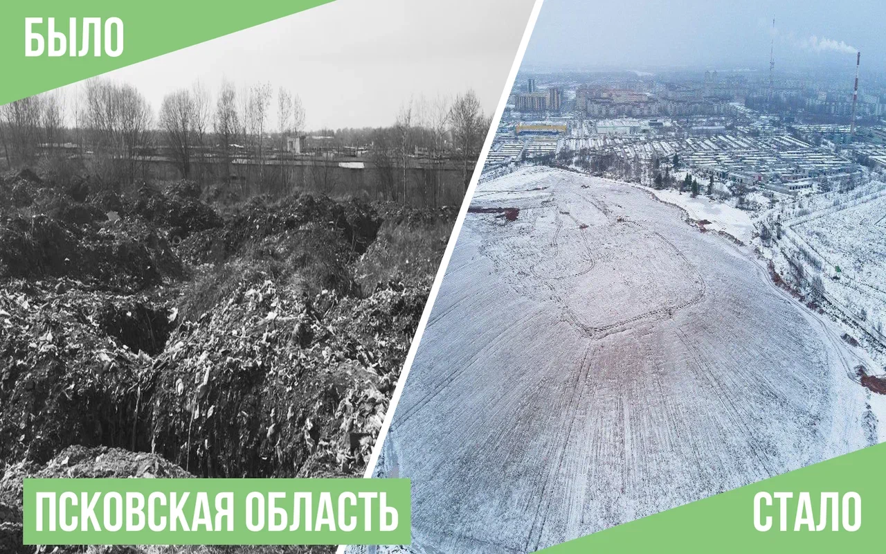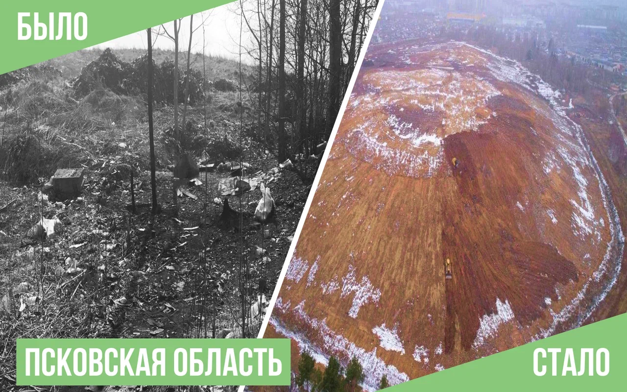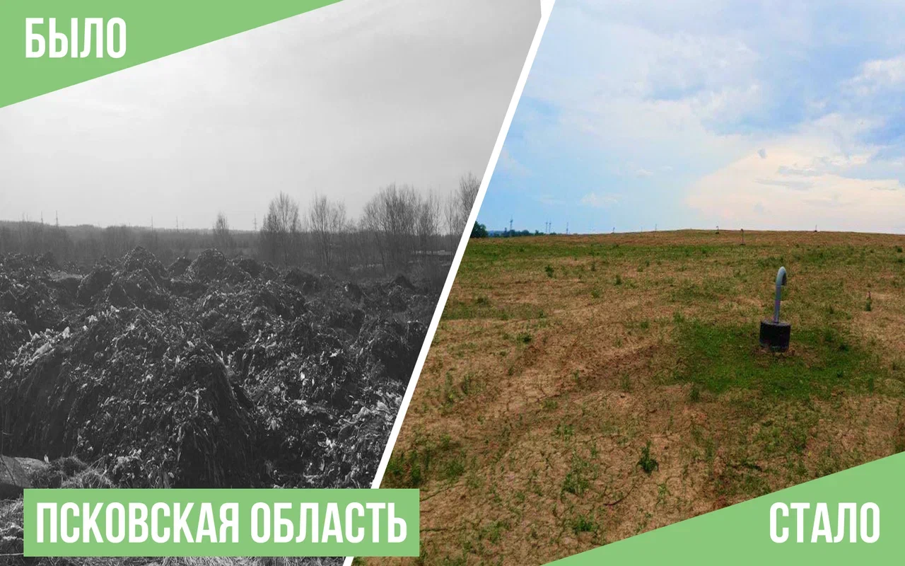 В 2023 году вблизи Пскова завершили рекультивацию полигона бытовых отходов, самого крупного на территории региона. Свалка, которую 70 лет использовали для складирования отходов, находилась рядом с жилыми домами. Ее площадь составляла более 180 тысяч квадратных метров.