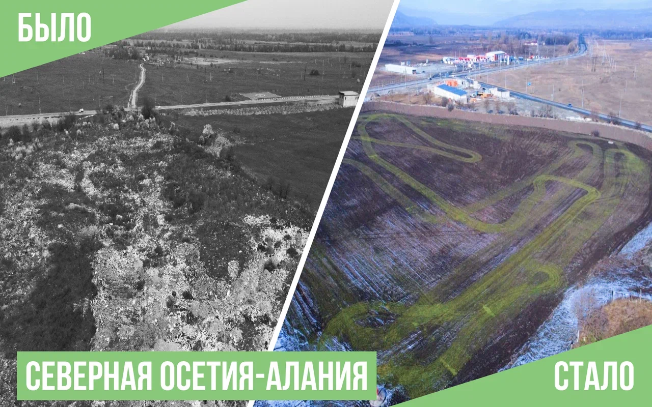 Летом 2023 года завершили рекультивацию крупного Владикавказского полигона твердых коммунальных отходов. Сейчас на месте свалки, где было 4,5 миллиона тонн отходов, зеленая территория с деревьями и кустарниками.