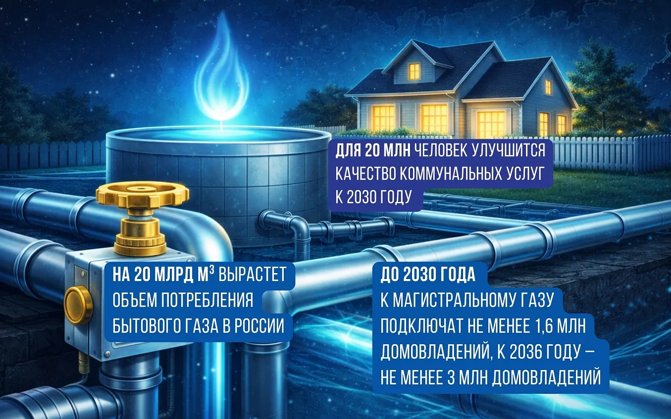 Социальная газификация – еще одна масштабная программа, которая реализуется по нацпроекту «Инфраструктура для жизни». Она позволит довести целевой уровень газификации до 82,9%. Уже более 1,7 млн заявок на догазификацию приняли по всей стране, свыше 1,46 млн домов обеспечили технической возможностью подключения, а более 1,1 млн семей уже используют бытовой газ. До 2030 года к магистральному газу подключат не менее 1,6 млн домовладений, а к 2036-му – не менее 3 млн.