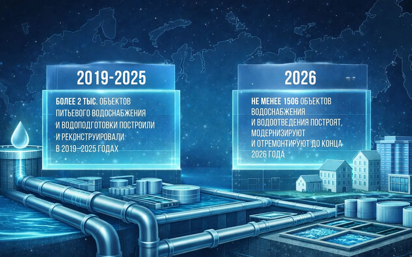 С 2019 по 2025 год реконструировали и модернизировали 2025 объектов питьевого водоснабжения и водоподготовки. Причем 551 объект отремонтировали только за прошлый год.