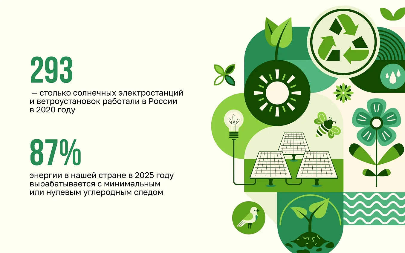 В 2020 году в России работали 293 СЭС и ВИЭ. Благодаря производству собственных комплектующих для зеленой энергетики, направление постоянно развивается. Оборудование для ветрогенераторов и солнечных батарей выпускают уже несколько российских предприятий. Например, завод «Энкор» в Калининградской области производит фотоэлектрические преобразователи. Специалисты выращивают кремниевые слитки и делают из них солнечные ячейки по российской технологии. Параллельно идет работа над увеличением их КПД.