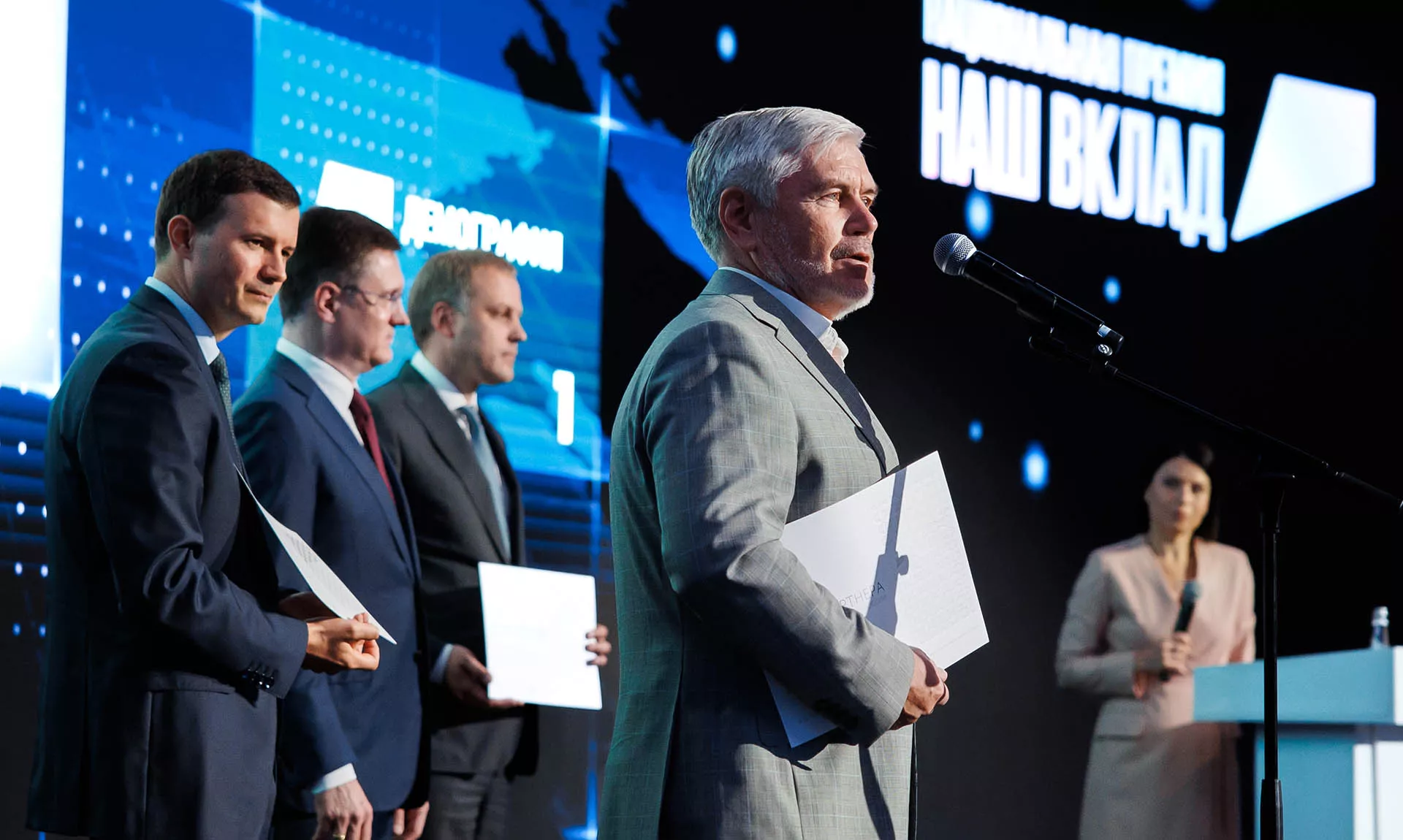 Национальная премия «Наш вклад» — первая в России премия, которая оценивает вклад бизнеса и некоммерческих организаций в достижение национальных целей и реализацию задач нацпроектов. В мероприятии приняли участие заместитель председателя правительства РФ Александр Новак, представители федеральных органов исполнительной власти, деловых объединений и общественных организаций.